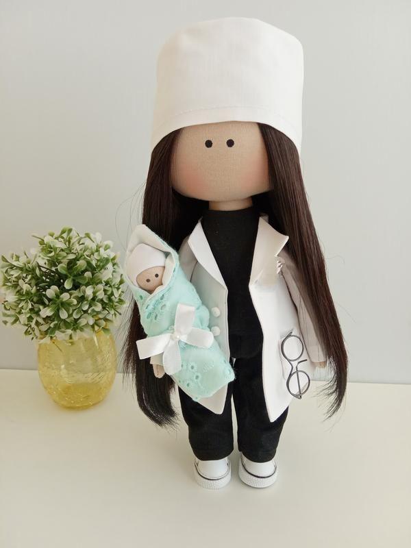 ялька ручної роботи Доктор зі всієї медичної атрибутикою. Хочу побажати всім міцного здоров'я! Бережіть себе і своїх близьких. Це так важливо! А якщо хочете подарувати емоцію лікарям, медсестрам і відповісти добром - подаруйте ляльку. Не прогадаєте, це перевірено. Зростання 27 см, одяг незнімна, варто самостійно. Лялечка під замовлення, пишіть! Товар под заказ
