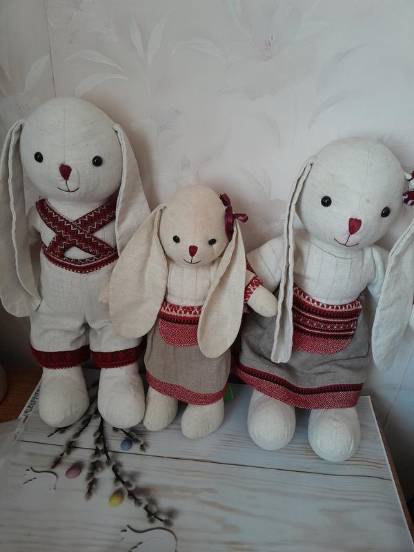 Пропоную етно-ляльки, виготовлені із льону. Тато, мама, і дитина зайчики. нюанси-невелички плямки на мамі і дитині-2 останні фото. Тато без нюансів. Продаю тільки всією родиною, по штучно не продаю. Вимушений продаж!(((