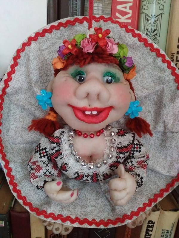 Інтер'єрна лялька, виготовлена в чулочній техніці.