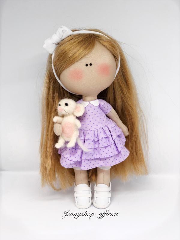 Интерьерная кукла ручной работы,выполнена из хлопка с валяной мышкой.Кукла в подарочной коробке.