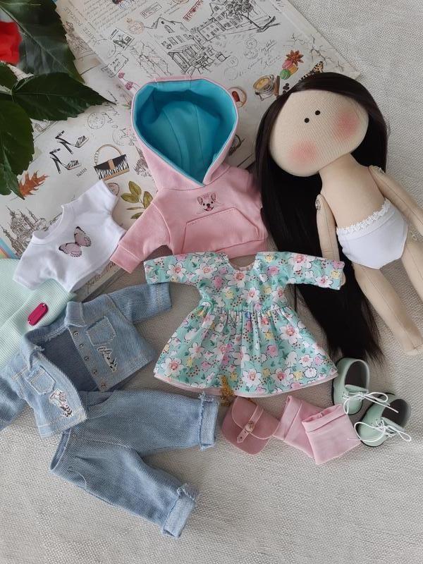 Кукла ручной работы с гардеробом. Высота куклы 28 см, одежда весь снимается.