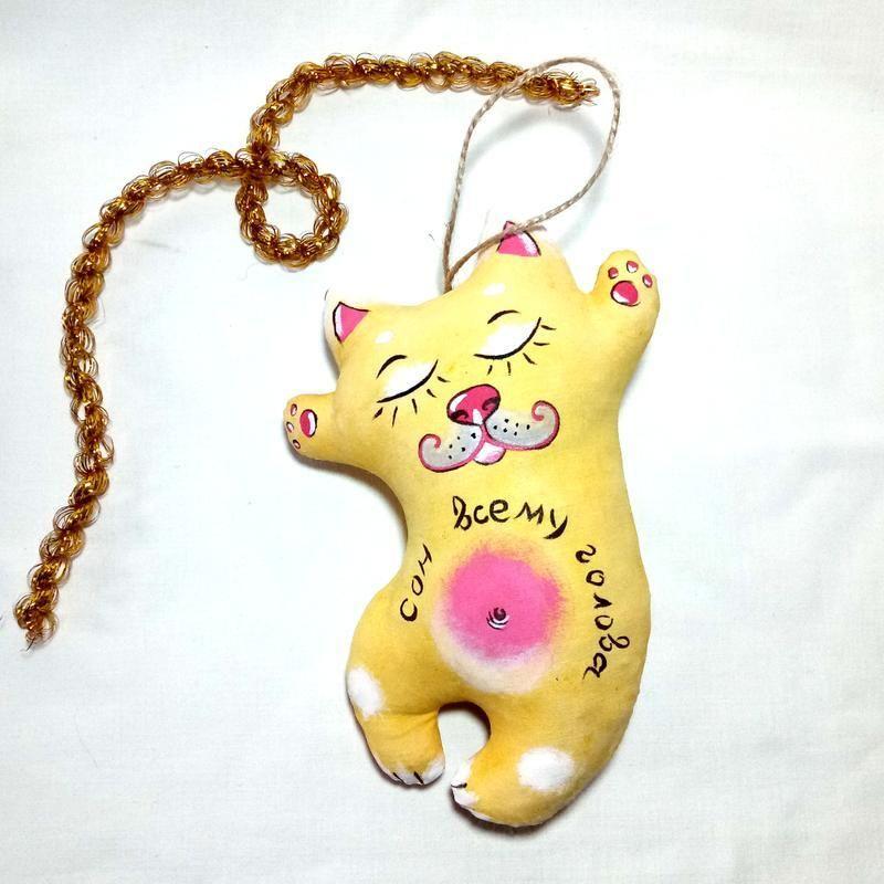 Сувенірна іграшка ручної роботи. В техніці "горищні іграшка". Просочення тканини - куркума, наповнювач - холлофайбер. Розмір 19 див.