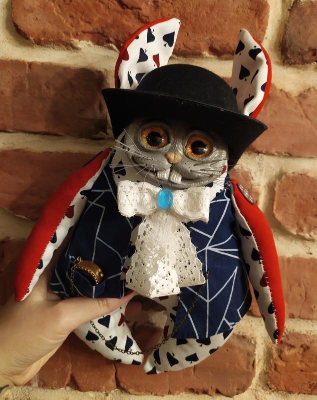 Игрушка в смешанной технике ☺️ Кролик из Алисы. Материал: ткань, холлофайбер, стеклянные глазки, полимерная глина,лак,акрил, фурнитура Размер малыша :25 см с ушками 32