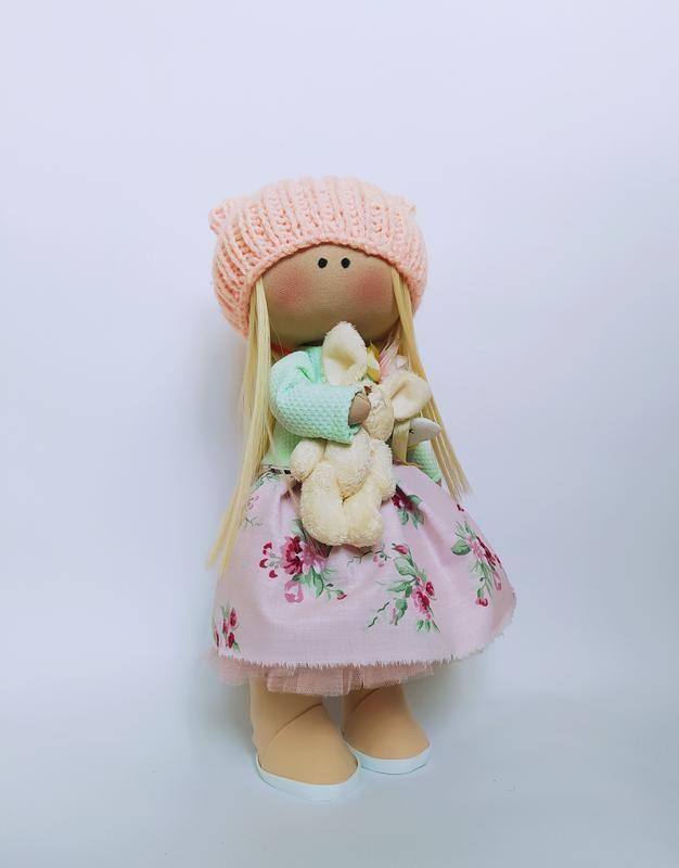 Текстильная кукла ручной работы 🍑 . Куколка самостоятельно стоит, может сидеть. Ручки, ножки и голова подвижны. Одежда не снимается,можно снять только обувь. Рост девочки 28см. Куколка отправляется в новый дом 🏡 в красивой упаковке.