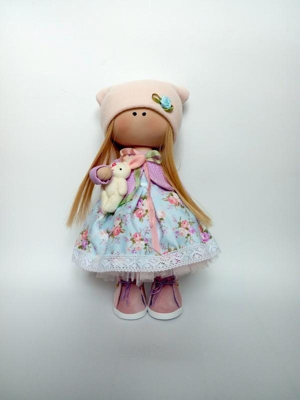 Текстильная кукла ручной работы. Рост куколки 28см. Самостоятeльно стоит,ручки,ножки и голова подвижны. Одежда не снимается. Сшита из натуральных тканей.