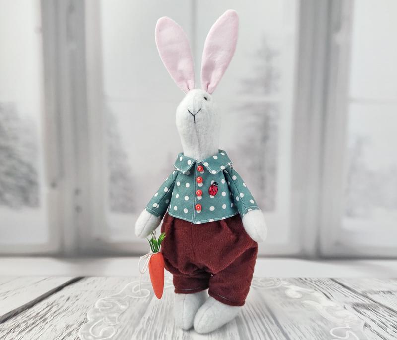 Игрушка интерьерная в стиле тильда "кролик морковный"