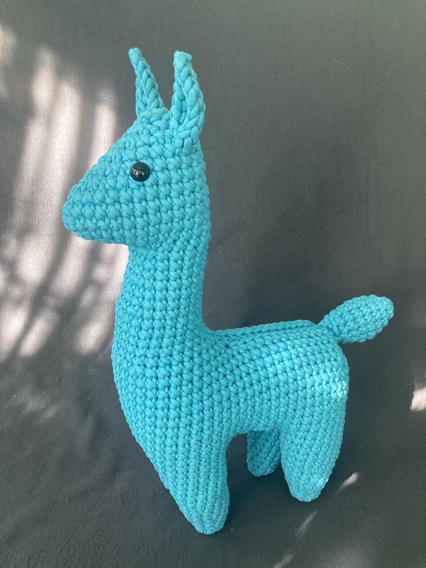 Однотонная голубая лама, впишется в любой интерьер. Идеальный подарок для детей и взрослых. РАЗМЕР: Высота - 60 см (76 см с ушами) Длина - 34 см (без хвоста) Ширина - 15 см ВЕС: ~1500 г МАТЕРИАЛ: Пряжа: 40% Хлопок, 60% Полиэстер Наполнитель: Гипоаллергенный холлофайбер Глаза: на безопасном креплении