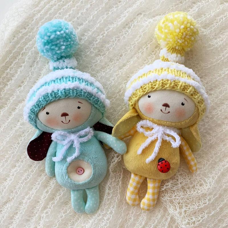 Мягкие плюшевые игрушки - пара зайчиков в шапочках, п. 24
