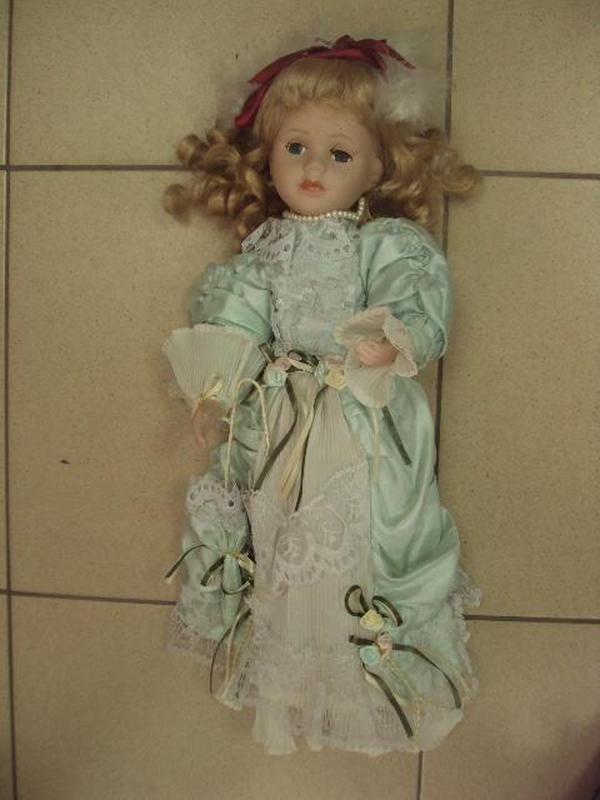 Фарфоровая кукла девочка с зонтиком в голубом платье 40 см №464п