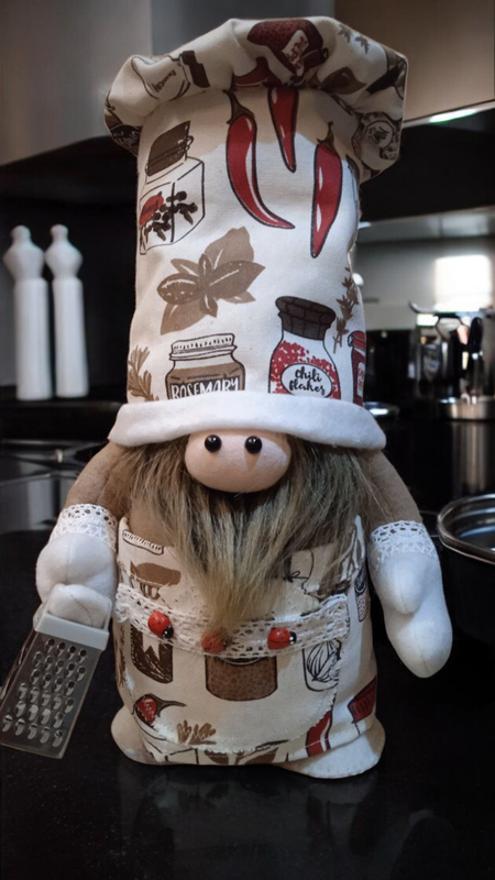 Наш гном-кухар: ідеальний подарунок для вашої кухні! 🧑🍳✨ Цей милий гном виготовлений вручну з любов’ю та увагою до деталей. Він одягнений у класичний кухарський ковпак і фартух. Гном-кухар стане стильним декором для вашої кухні або незабутнім подарунком для близьких. Характеристики: 🔸 Матеріал: натуральні тканини та екологічні матеріали 🔸 Розмір: 37 см 💡 Кількість обмежена! Замовляйте прямо зараз, щоб прикрасити свою кухню або порадувати друзів.