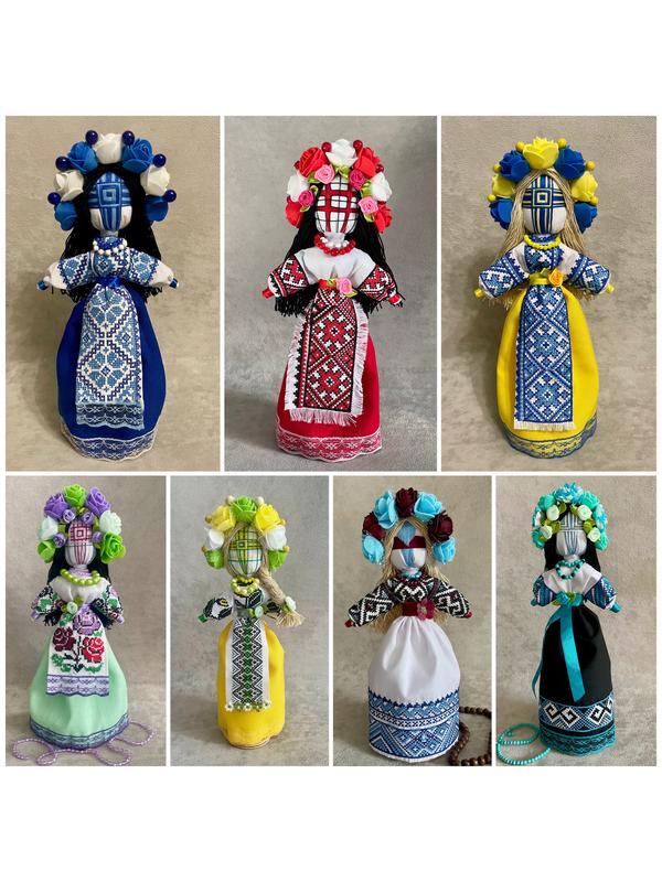 Ляльки-мотанки стануть окрасою будь-якого інтер'єру, а також гарним подарунком на будь-яке свято. Усі лялечки доступні для замовлення. Ручна робота. Стоять самостійно на дерев'яній підставці. Висота 26-28 см. Якщо в подарунковій коробці ще +40 грн.