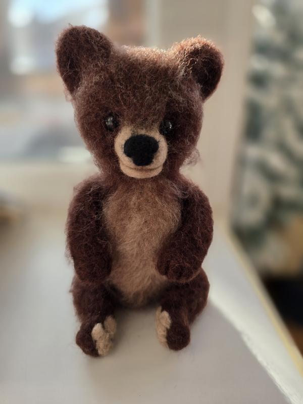 Интерьерная игрушка из шерсти ручной работы мишка, валирование