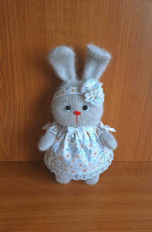 Маленьке миле зайченя ручної роботи, завдовжки всього ±20 см з вушками, верхні лапки рухливі. Вироблене з ангорової пряжі, дуже приємне на дотик. Іграшка може послужити чудовим доповненням до вашого інтер'єру, або стати оригінальним подарунком дитині чи дівчині.