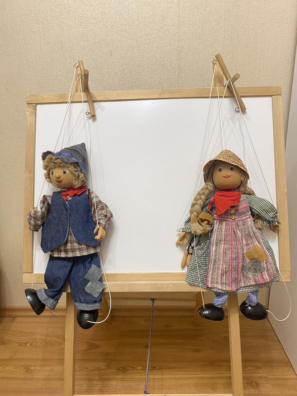 Продам куклы-марионетки. Дерево, ткань. Мальчик 45 см Девочка 43 см. Цена указана за одну куклу.