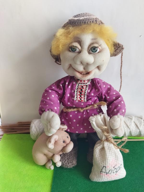 Игрушка выполнена своими руками в чулочной технике. Имеет каркас. Головной убор по заказу покупателя. Одежда можно дополнить жилетом.