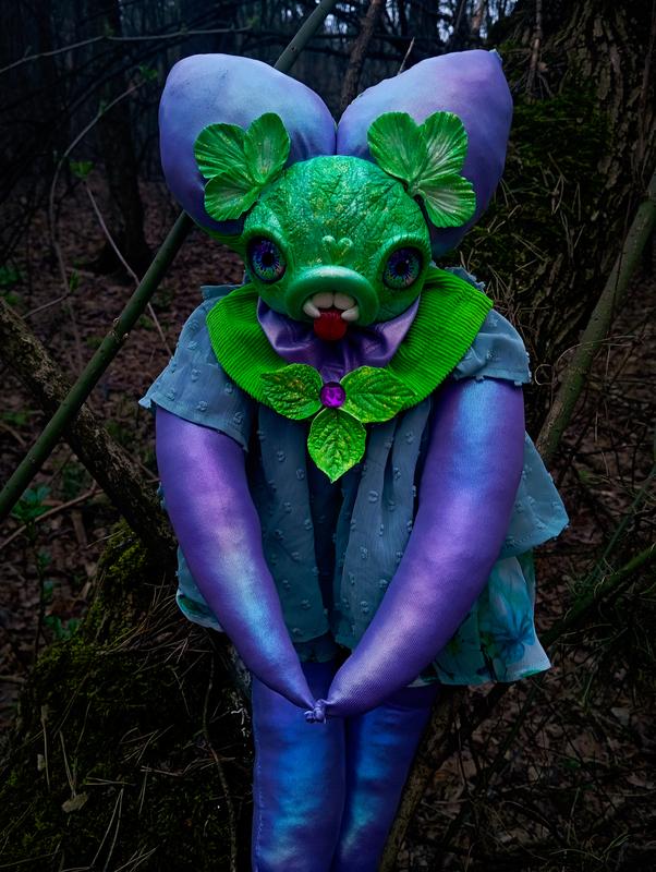 Фіолетовий кролик сидить на гілці в лісовій тиші, ніби вартовий перших весняних пагонів, а його зелене платтячко з листям заячої капусти шелестить про пробудження природи, розповідаючи про новий початок. Ця унікальна іграшка стане ідеальним подарунком для дівчини чи близької людини, адже створена лише в єдиному екземплярі, і її не знайти ніде більше — справжня лялька ручної роботи, що принесе подих лісових чар і стане незвичайним декором для дому в хорор-стилі. Розмір: 55×20 см. Матеріали: тканини (вельвет, еластан, поліестер), мордочка з полімерної глини, очі — скляні кабошони, наповнювач — холлофайбер, декор — пластмасовий кабошон у грудях. Ціна: 3500 грн. Доставка Новою Поштою безкоштовна. Колір оригіналу може відрізнятися від кольору на фотографіях. Не пропустіть шанс забрати цю унікальну красуню — оформіть замовлення прямо зараз!
