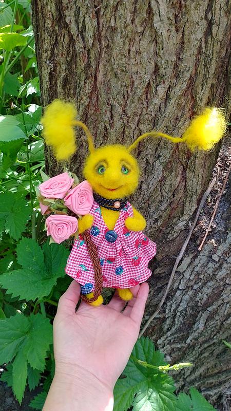 Интерьерная игрушка таракан девочка, сваленная из натуральной шерсти, высота 27см с усиками.