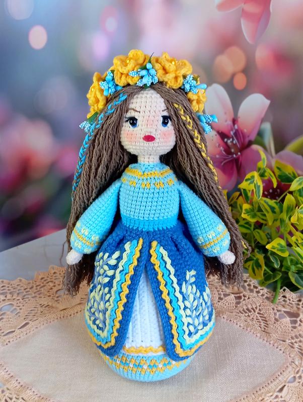 Интерьерная куколка Берегиня связана крючком из полухлопка, наполнитель холлофайбер, надежное крепление деталей. Высота 25 см.
