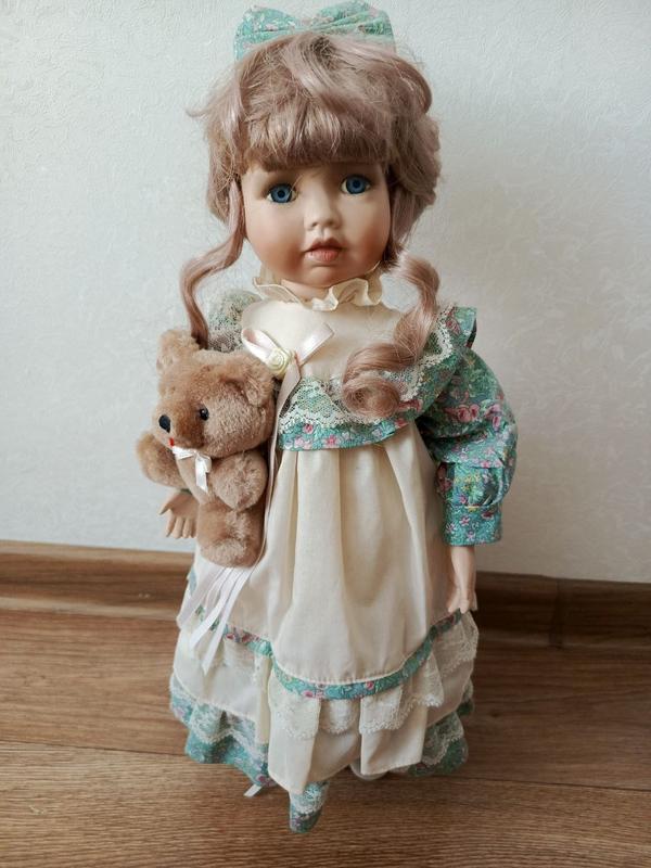 Винтажная фарфоровая кукла – «ALBERON COLLECTABLE PORCELAIN DOLL» – 45 см, оригинальный костюм. Она никогда не реставрировалась и не изменялась: все элементы являются оригинальными и тщательно сохраненными. Детали: Высота: 45 см Бренд: «ALBERON COLLECTABLE PORCELAIN DOLL». Материалы: фарфор (голова, руки, ноги), тканевое тело. Костюм: оригинальный . Состояние: отличное винтажное состояние. Предназначена для демонстрации или коллекционирования, не является игрушкой. Идеально подходит для любителей винтажа, коллекционеров фарфоровых кукол или в качестве очаровательного экспоната с ностальгическим оттенком.