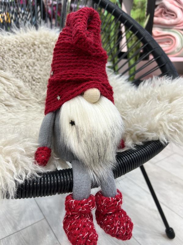 🎄 Гномик декоративний Цей чарівний гість з північних легенд створений, щоб дарувати затишок і святковий настрій. З пухнастою білою бородою, кумедним носиком і високою червоною шапкою, що грайливо спадає — він одразу привертає увагу. 🧤 У червоних рукавичках і черевиках з білими акцентами, він виглядає ніби щойно з казки. Сіре тільце додає контрасту, а текстура матеріалів — тепла і приємна на дотик. ✨ Ідеальний для: • святкового декору вдома чи в офісі • фотозони або вітрини • подарунка з характером 📍 Висота: загальна 40 см 📌 Ручна робота / декоративний виріб 📸 Виглядає ефектно як окремо, так і в композиції з іншими гномами чи новорічними елементам