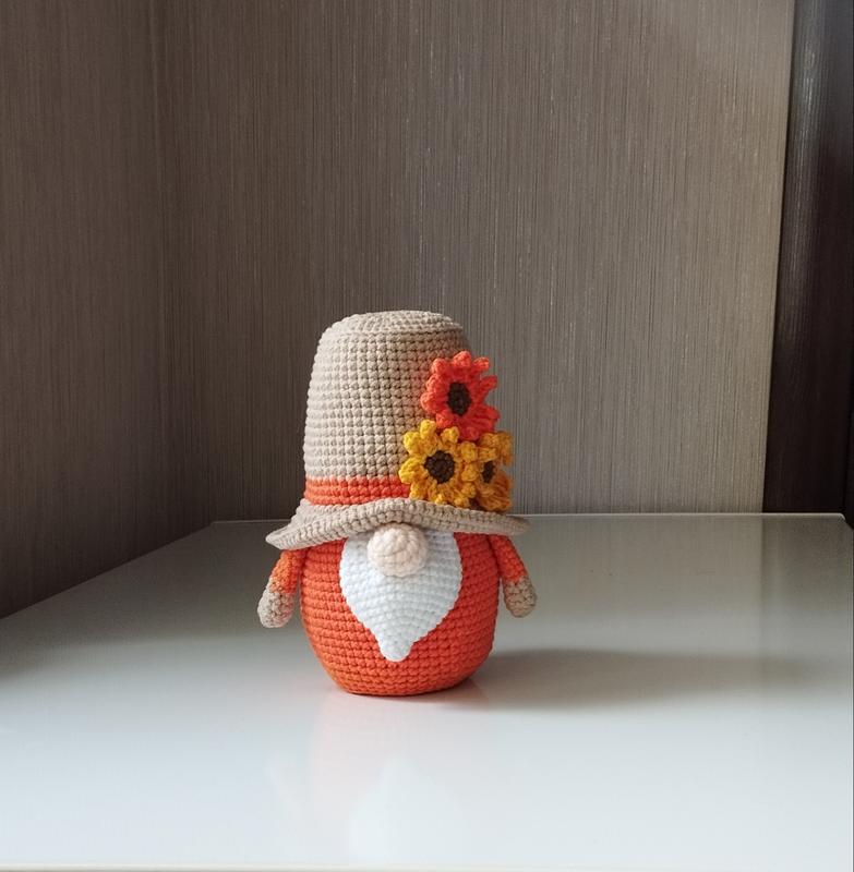 осенний гномик вязаный крючком из полухлопковой пряжи, высота 18см, наполнитель-холофайбер, стоит самостоятельно.