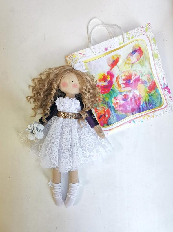 Новая интерьерная кукла Элли (36 см) и подарочный пакет, ручная работа. Волосы трессы, гипюр, велюр, металлический декор. пояс, букетик цветов. Оригинальный подарок и изюминка в интерьере.