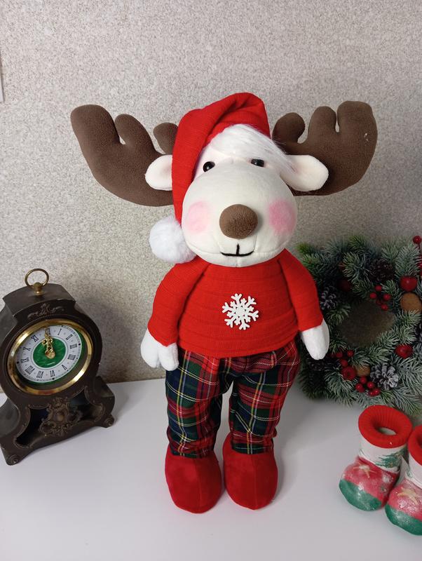 Олени изготовлены из качественного материала. Высота 50см. В середине металлический каркас. Работа выполнена по принципу куклы. В середине наполнения холофайбер.