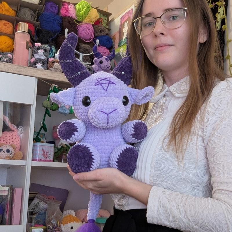 Гигантский бафомет из плюшевой пряжи! Даже мягкий. Ручная работа! Рост без рожек – 20 см. Только безопасные и качественные материалы! Пряжа и наполнитель не вызовут аллергию. Глаза на безопасном креплении. Игрушку можно стирать! Под заказ в любом цвете! Срок ожидания - от 3 до 10 дней.
