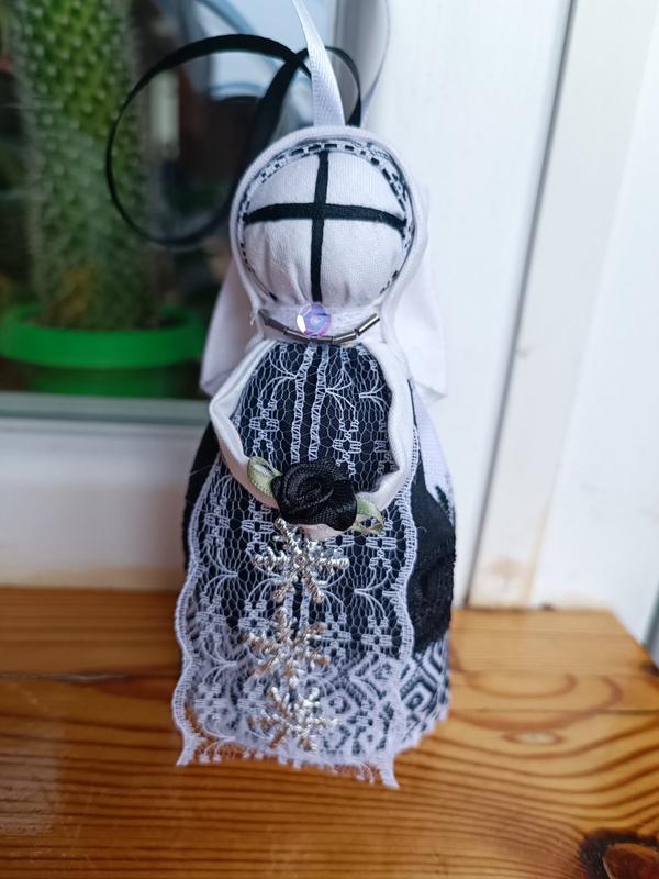 Мотанка від автора чорна з білим З чорною трояндою Ексклюзивна мотанка 10 см