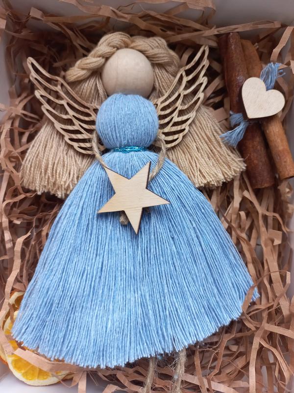 Янгол макраме подарунок на Різдво або Миколая ручної роботи розмір 14-16см. Подарункове пакування картонна коробка 20х15см . Можливе виконання в різних кольорах