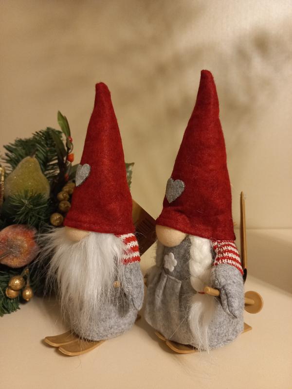 Гномы на лыжах мальчик, девочка цена указана за 2 шт Новорічний гном у класичних сірих та червоних кольорах, з високим червоним капелюхом, прикрашеним серцем, та лижами. Доставка: - Отправлю Укрпочтой/ Новой почтой за счет покупателя после 100% оплаты на карту Приватбанка. Возврат и обмен не предусмотрен - На автоматическую кнопку КУПИТЬ реагирую только после оплаты