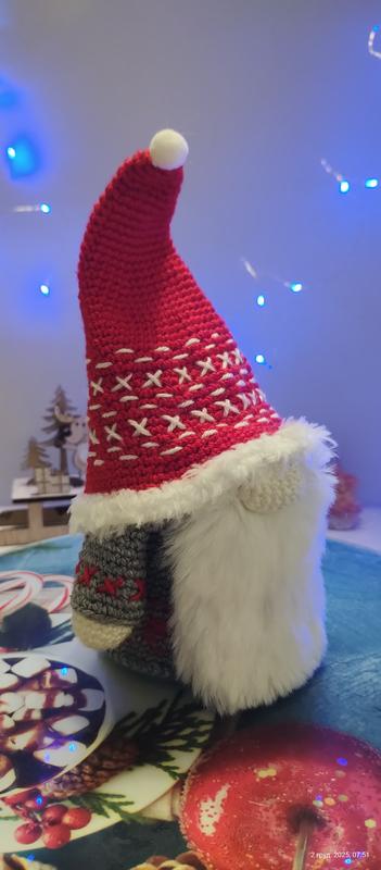 Гномик связан из акриловых нитей, высота 20 см.