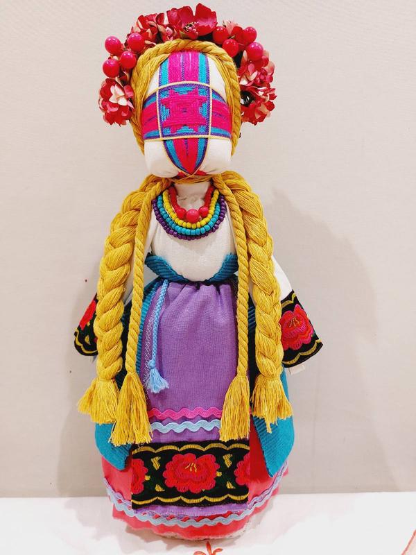 Інтер'єру єрна лялька мотанка в патріотичних кольорах стане прекрасним подарунком оберегом для вас і ваших близьких. Лялька виготовлена мною з натуральних матеріалів.Висота лялі 42см, на дерев'яна яній підставці. Нехай ця лялька мотанка-Берегиня захищає і оберігає вас і вашу родину у ці скрутні часи!Все буде Україна