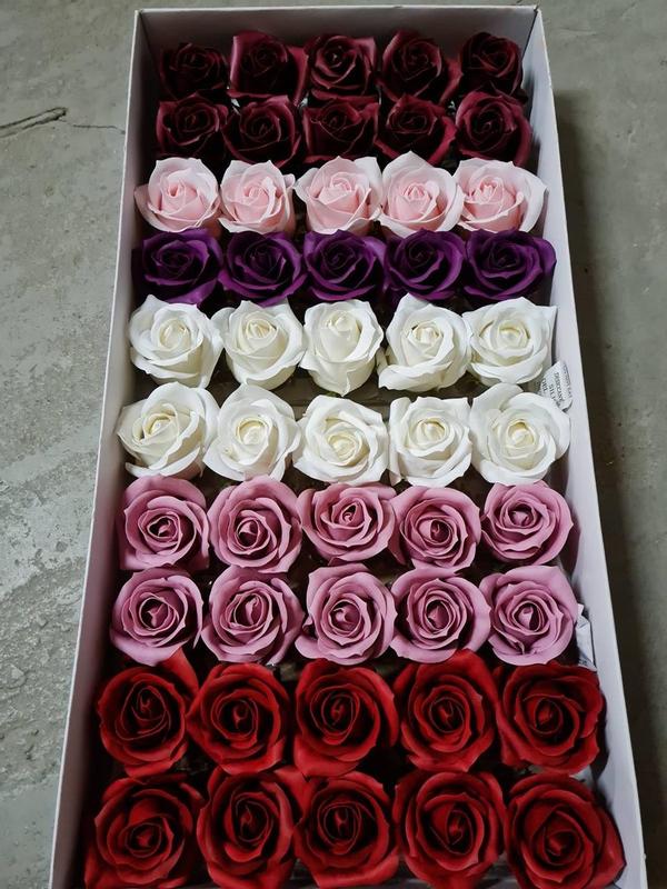 Категория -- готовые миксы из мыльных цветов, изготовленные на основе мыльной суспензии Назначение - для создания букетов из мыльных цветочков Количество оттенков цветов из мыла - 6 цветов Плодоножка мыльного цветочка - зеленый пластик с отверстием под шпажку. По 5-10 сердцевидных розочек из мыла каждого оттенка: красный, махагон, белый, фиолетово-баклажанный, нежно-розовый и винный Плодоножка мыльного цветочка - зеленый пластик с отверстием под шпажку. Размер бутончиков - 5х5 см. Количество в коробке - 50 шт. Flori de Săpun - крупнейший поставщик мыльных цветов и декора в Украине. Наши мыльные цветы не увядают годами. А неповторимый и нежный аромат сохраняется от одного года до трех лет. Цветы, изготовленные на основе мыльной суспензии - это современный флористический тренд в Украине. Ведь неувядающие букеты - уместный подарок любимым, коллегам или родственникам в канун знаменательных событий. Ассортимент стандартных мыльных роз состоит из следующих цветов: красный, белый, молочный, розовый, махагон, светло-розовый, малиновый, бордо, фиолетовый, желтый зеленый, красный баклажан, сиреневый, голубой, бирюзовый, небесный. Приглашаем также ознакомиться с ассортиментом стандартных, сердцевидных и кучерявых роз из мыла, камелиями, георгин, хризантем, пионов, сакуры, гортензий, тюльпанов, гвоздик, шляпных коробок для букетов из мыльных цветов.