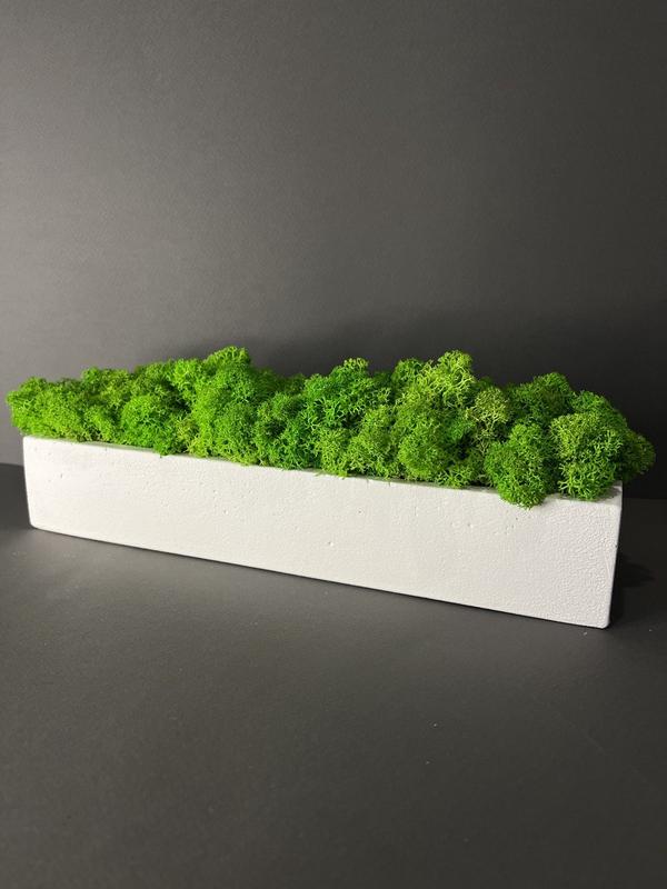 Прямоугольное гипсовое кашпо со стабилизированным мохом - это отличный выбор для тех, кто хочет создать стильный и уютный интерьер с элементами природы. Размер: 30*7*5 см Также возможно изготовить под ваш размер.
