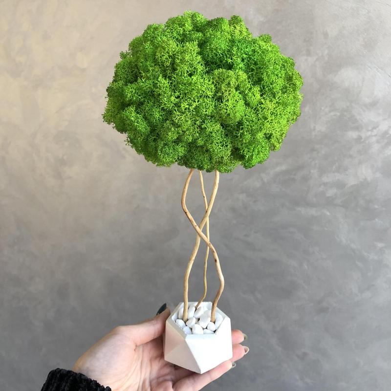 MiNature Moss - це студія вертикального озеленення стабілізованим мохом та рослинами. Дерево зі стабілізованим мохом, зробить акцент у вашому інтер'єрі, додасть свіжості, унікальності. Також дерево стане чудовим подарунком для рідних, близьких, колег, друзів та здивує абсолютно кожного! Колір моху салатовий Розмір: висота 29 см, куля 13см*9 см Стабілізований мох-це справжня знахідка, адже за ним не потрібно доглядати, від слова зовсім. Переваги моху: -зберігає насичений колір та природну м'якість до 10ти років -гіпоалергенний; -має антистатичну поверхню (за рахунок гліцеринового розчину в якому він вимочується, пил на ньому не накопичується) -його не потрібно обприскувати, поливати; -Не вимагає освітлення; -в ньому не заводяться комахи, різні шкідники та пліснява Головні поради для продовження терміну експлуатації моху: - не мох під пряме сонячне проміння якщо мох щодня світитиме сонце, він швидко вицвіте - У приміщенні не повинно бути холодно чи спекотно якщо температура нижче +4 або вище +35 градусів, мох швидко висохне. - не розміщуйте мох біля нагрівальних приладів (кондиціонерів, батарей, навіть теплої підлоги) відстань від приладів має бути від 1 м-коду. - не мочіть і не обприскуйте водою якщо мох намочити з поверхні змиється розчин, таким чином він буде сохнути і втрачати колір - Підтримуйте вологість повітря 40-70% вологості якщо вологості у приміщенні недостатньо, її можна підвищити зволожувачем повітря - Забирайте пил з поверхні раз на 4-6 місяців делікатним рухом щіткою для пилу або холодним струменем повітря фена У нас ви отримуєте: _Кращу ринкову ціну _Якісний продукт _Детальну консультацію _Надійні упаковки _Стильний декор, який нікого не залишить поза увагою Ручна робота яку ми робимо якісно, надовго!