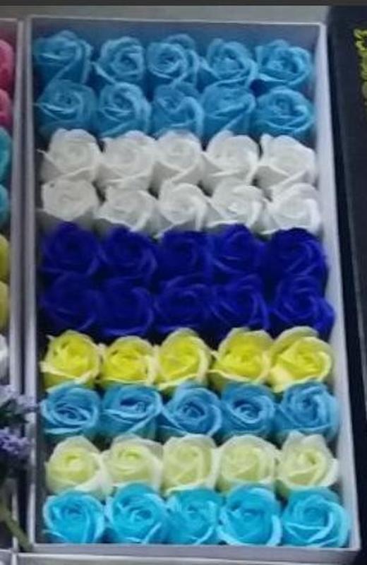 Категория -- микс из мыльных роз Количество оттенков цветов из мыла -- 6 цветов Плодоножка мыльного цветочка -- зеленый пластик с отверстием под шпажку Размер бутончиков цветочков из мыла -- 5х5 см Количество мыльных роз в упаковке -- 50 шт Наши мыльные цветы не вянут. А неповторимый и нежный аромат сохраняется от одного года до трёх лет. Цветы, изготовленные на основе мыльной суспензии - это современный тренд в флористике. Ведь неувядающие букеты - уместный подарок любимым, коллегам или родственникам в канун знаменательных события. Ассортимент мыльных цветов состоит из таких оттенков: красный, белый, молочный, розовый, махагон, светло-розовый, малиновый, бордо, фиолетовый, сиреневый. Предлагаем мыльные цветы оптом и в розницу с доставкой по всем регионам Украины. Для копоративных покупателей предусмотрены специальные цены ниже розничного прайса. Приглашаем ознакомиться с кучерявыми, сердцевидными и стандартными розами из мыла, а также камелиями, георгинами, хризантемами, пионами, сакурой, гортензиями, тюльпанами, гвоздиками, шляпными коробками для букетов из мыльных цветов.
