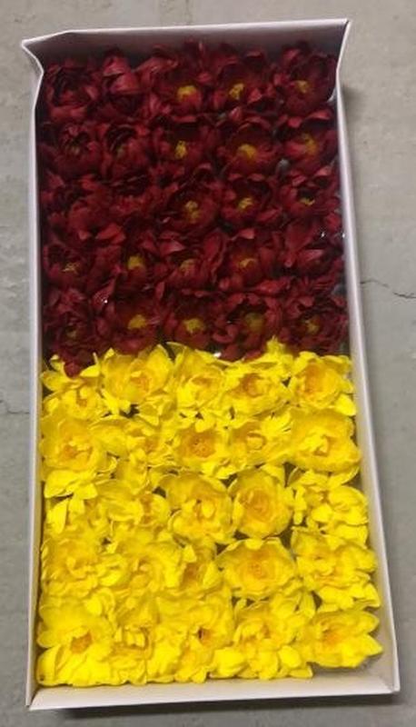 Категория -- микс из мыльных хризантем Количество оттенков цветов из мыла -- 2 цвета (бордо и желтая) Плодоножка мыльного цветочка -- зеленый пластик с отверстием под шпажку Размер бутончиков розочек из мыла -- 5х5 см Количество мыльных роз в упаковке -- 50 шт Наши мыльные цветы не вянут. А неповторимый и нежный аромат сохраняется от одного года до трёх лет. Цветы, изготовленные на основе мыльной суспензии - это современный тренд в флористике. Ведь неувядающие букеты - уместный подарок любимым, коллегам или родственникам в канун знаменательных события. Ассортимент мыльных цветов состоит из таких оттенков: красный, белый, молочный, розовый, махагон, светло-розовый, малиновый, бордо, фиолетовый, сиреневый. Предлагаем мыльные цветы оптом и в розницу с доставкой по всем регионам Украины. Для копоративных покупателей предусмотрены специальные цены ниже розничного прайса. Приглашаем ознакомиться с кучерявыми, сердцевидными и стандартными розами из мыла, а также камелиями, георгинами, хризантемами, пионами, сакурой, гортензиями, тюльпанами, гвоздиками, шляпными коробками для букетов из мыльных цветов.