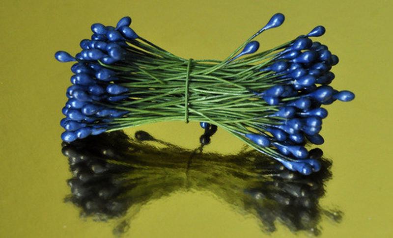 Тычинка для цветов двухсторонняя, Темно-синие тычинка глазурь испльзуется при изготовлении цветов и ягод, в бижутерии или сапбукинге Длина 55 мм торщина 2 мм Цена за 1 нитку (2 стороны)