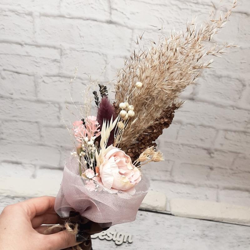 Букет комплимент в розовых и коричневых тонах с сухоцветами
