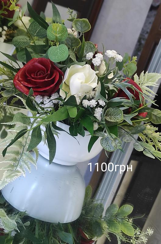 Композиции из цветов, которые изготовлены из качественных искусственных материалов. Эта изысканная красота станет прекрасным украшением для любого интерьера. Цветы выглядят максимально реалистичными. Композиции идеально подойдут в подарок, или смогут украсить ваш собственный дом, или офис. Многие композиция заказывают для декора церкви. Ваза керамическая