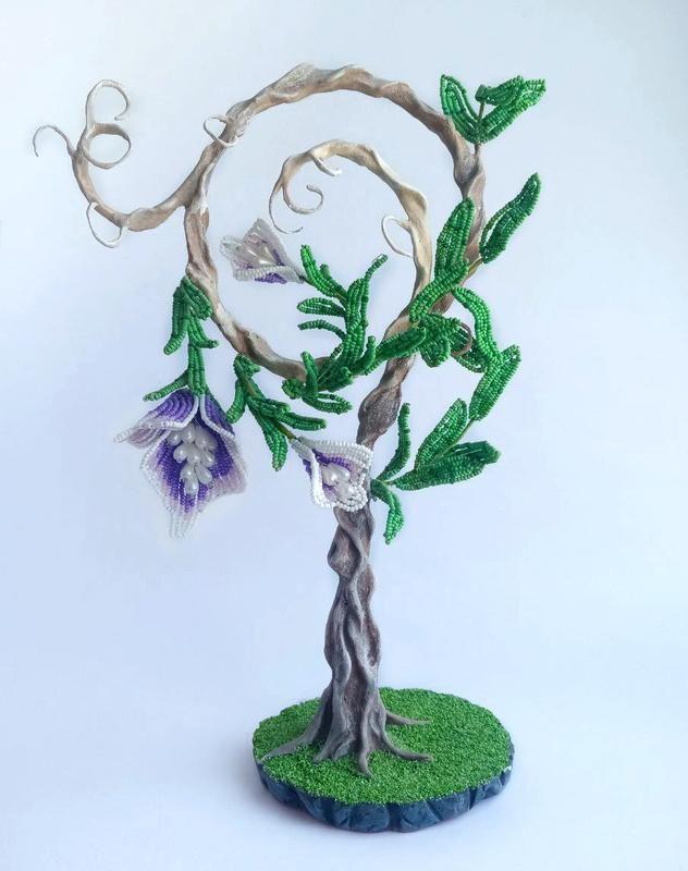 Декоративное деревце из полимерной глины с бисерными цветочками и листиками. Размер 31 см