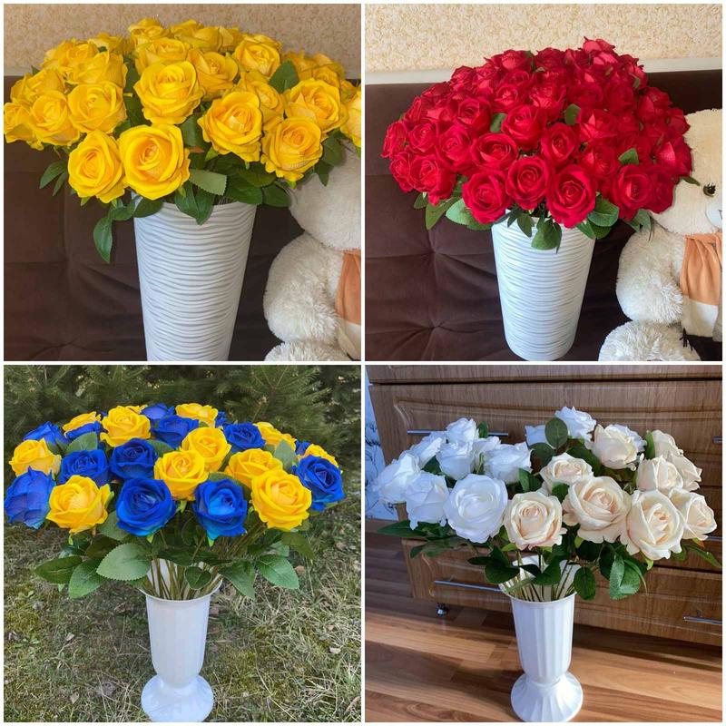 Большой выбор латексных троянд декор Выглядят как живые цветы никогда ни зайдут Всегда будут выглядеть свежими Высота 53см Очень красивые и качественные Цвета: белый, шампань, красный, синий, желтый, розовый Можно ставить в помещении и на улице Также есть в наличии другие латексные цветы Каллы, банановое дерево, монстера, пальма и антуриум, орхидеи Вы можете найти их в других моих объявлениях Также рекомендую подписаться на мою страницу