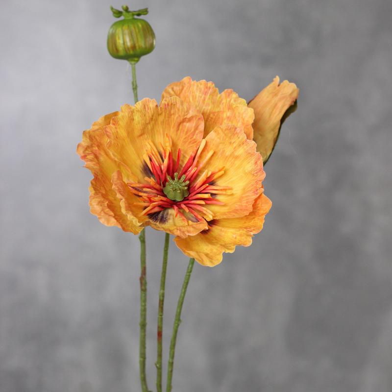 Штучна гілка маків deluxe, помаранчевого кольору, 58 см. квіти преміум-класу для інтер'єру