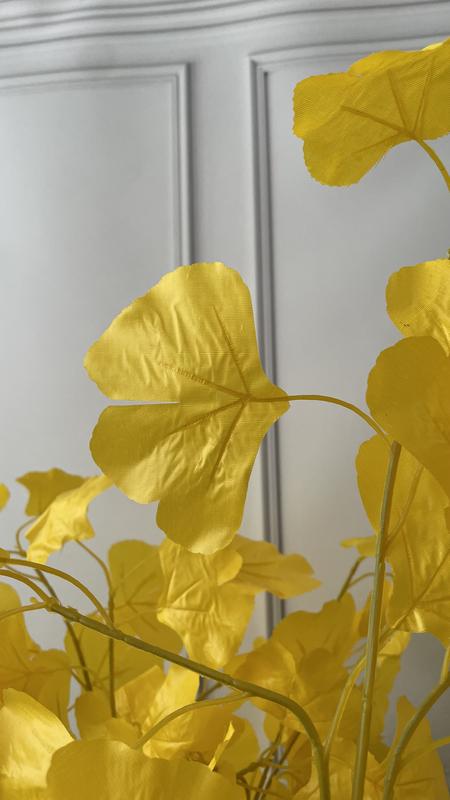 Листя гінкго білоба, відмінна якість , Листя тканина , стебло пластик з проволокою Стебло гнеться . Висота 64 см В наявності: Жовті Білі Золото