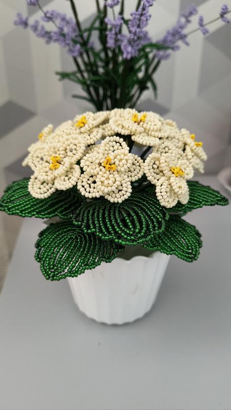 Фиалка из чешского бисера замечательный элемент декора и хороший вариант подарок. Высота с горлышком ~13 см.