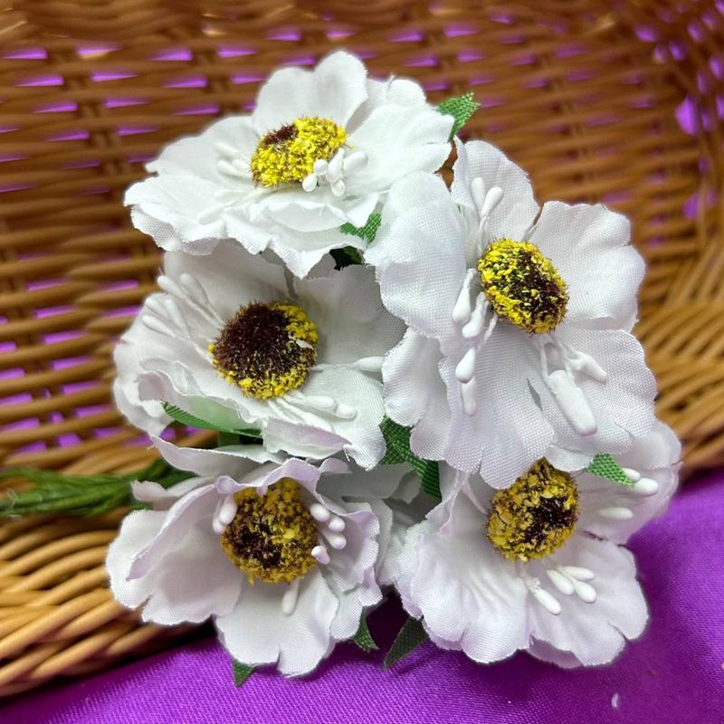 Цветы в букете на ветке Материал: проволока, ткань, бумагаЦвет: на фото и в названииДлина веточки- 9 смКоличество в 1 букете - 6 цветковДиаметр цветка: 4-4,5 смЦена указана за 1 букет