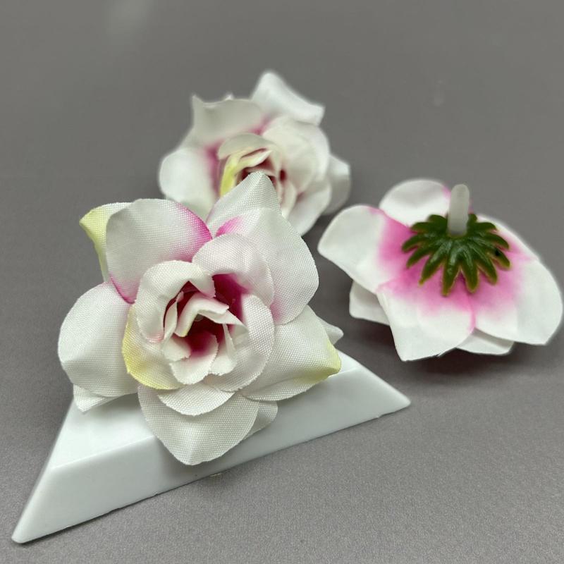 Гардения искусственная (головка) 3 см - айвори с розовым