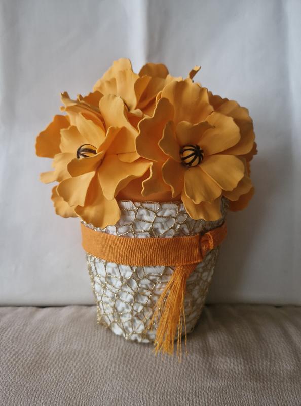 Декоративный вазон - авторская ручная работа. Положительный и какой акцент в вашем интерьере. Цветы ручной работы из фоамирана. Высота - 20 см.