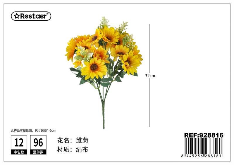 Оживи свое пространство невероятно реалистичными букетами из искусственных цветов. Яркие желтые ромашки на стебле созданы с высокой внимательностью к деталям, чтобы обеспечить максимально естественный вид. Цветок смотрится красиво, повторяя точную форму живого растения. Сделан из материала не аллергенного, с ним рядом безопасно находится и детям, и животным, всем, кто может иметь аллергию на растения. Великолепно смотрится в вазе. Идеальный выбор для декорирования любого пространства - от домашнего интерьера до свадебных или корпоративных мероприятий. Очаровывайте красотой без обременительного ухода - выберите искусственные цветы, которые всегда остаются свежими и волшебными. Цена указана за один букет. ОСОБЕННОСТИ: - максимально реалистичный - материал: текстиль и пластик - количество цветков - 15 - количество веток - 5 - высокая пластичность